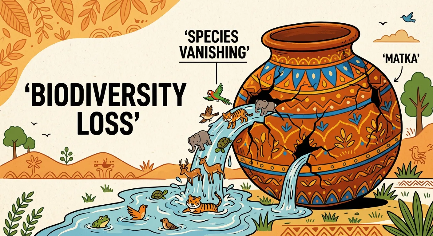 Imagine biodiversity as water in a precious matka, or earthen pot. Sadly, due to activities like habitat destruction, this pot is leaking! Species are disappearing faster than ever. Biodiversity conservation is our attempt to patch these leaks and save Earth’s rich biological heritage.