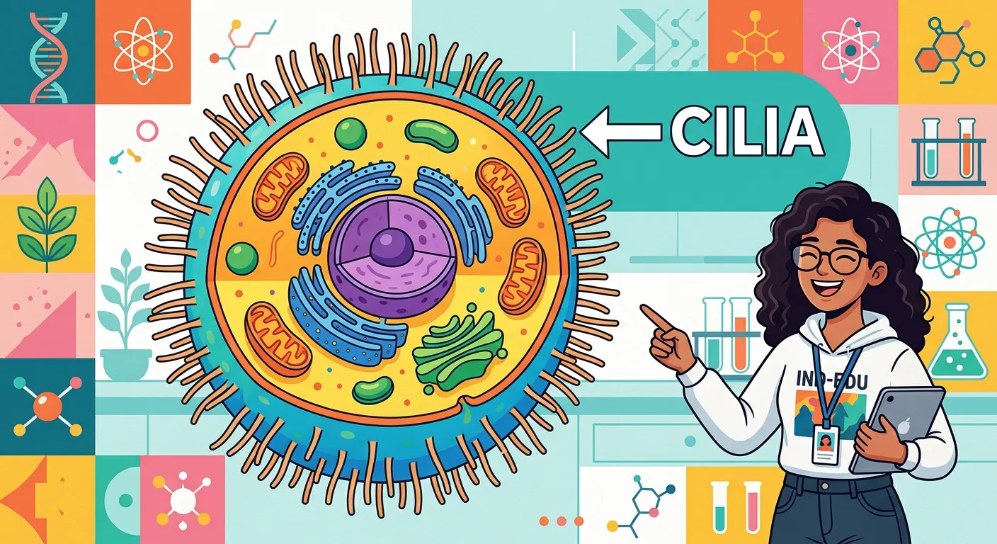 Welcome, future doctors! Imagine your cells wearing tiny, vibrating hair-like sneakers. These are cilia! They are microscopic, hair-like extensions on the surface of your cells. Think of them as the tiny, active workers that help your cells move or push things around in your body.