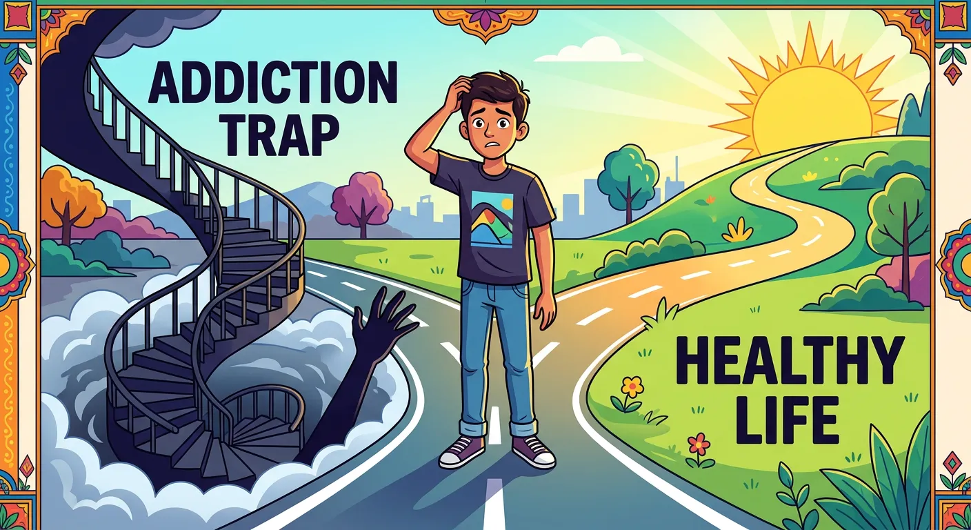Meet Rahul, a hardworking NEET aspirant. Sometimes, stress makes him seek a 'quick escape'. But what seems like a small curiosity can trap him like a spiral staircase. This is 'Addiction'—a psychological dependence that makes him choose substances over his dreams. Let's understand why.
