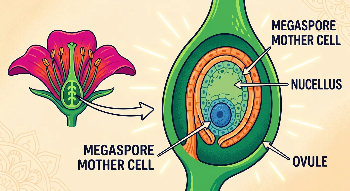 Namaste NEET warriors! Imagine the ovule as a tiny palace, deep within the ovary. Today, we focus on its inner chamber, the nucellus. Here, a special cell called the Megaspore Mother Cell (MMC) prepares to make history.