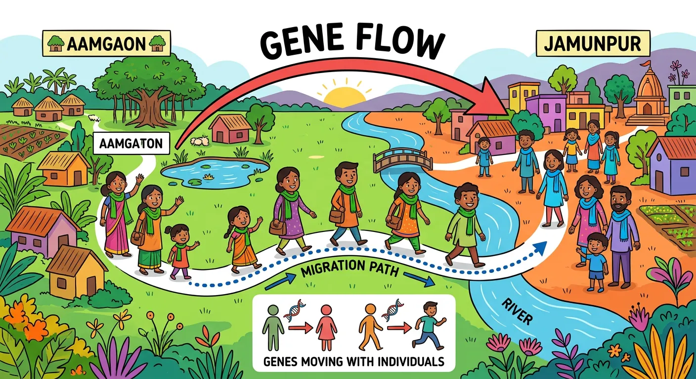 Namaste, future doctors! Welcome back. Today, we're diving into a crucial evolution topic: Gene Flow. Think of it like this: when people from different Indian villages travel and settle somewhere new, they don't just bring their bags; they bring their ideas, culture, and yes, their genes!