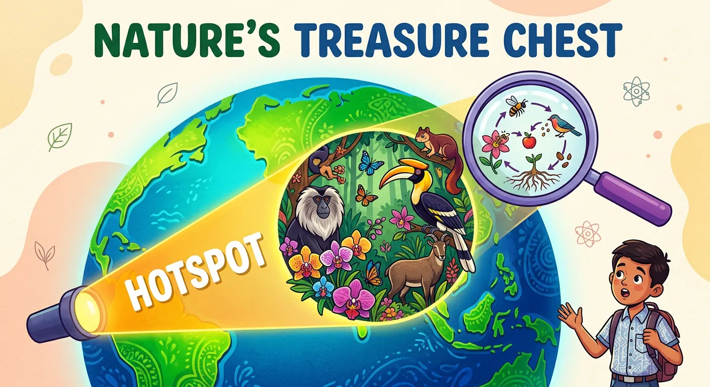 Hey NEET superheroes! Ever heard of nature's VIP clubs? We call them Biodiversity Hotspots! Think of them as incredibly rich treasure chests, absolutely overflowing with life. But there’s a catch! They are only found in very small, specific parts of the world. Let’s explore!