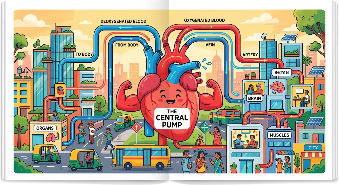 Welcome! Think of your body like a mega-city, and the circulatory system is the vital transport network. The heart acts as the central pumping station, pushing blood through highways of arteries and veins, ensuring every cell gets its essential supplies—just like a daily delivery service!