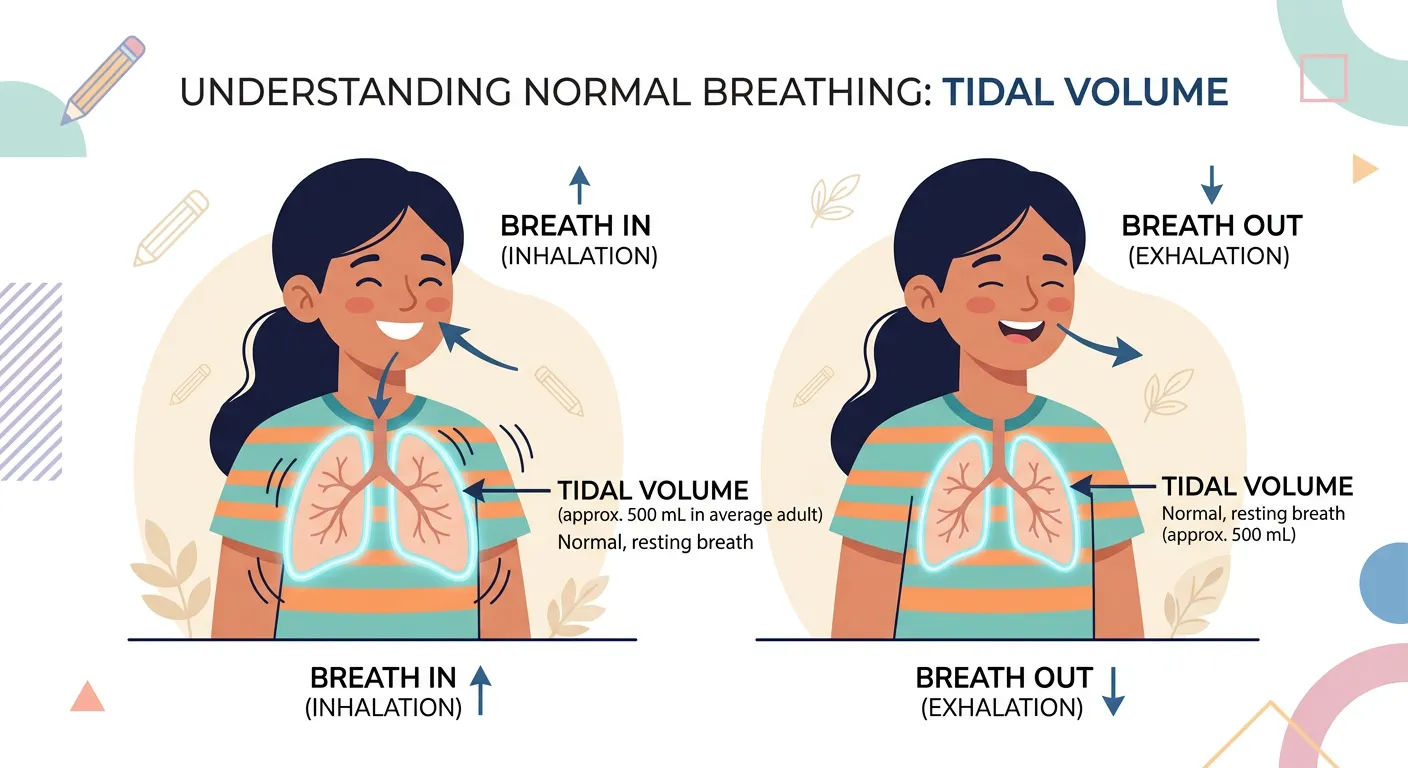 Welcome! Imagine breathing normally while reading your textbook. That small, easy volume of air you inhale and exhale effortlessly is your Tidal Volume, about 500 ml. It's the rhythm of your life, happening 12 to 16 times every minute without you even noticing it!