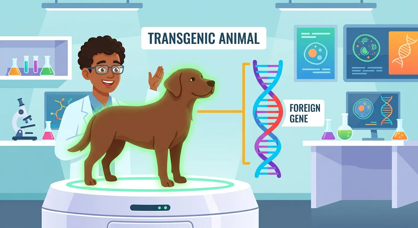 Meet the 'Super-pet'! No, it's not a superhero, but a Transgenic Animal! This slide introduces animals that have had their DNA deliberately modified, often by inserting a gene from *another* species. Think of giving a lab mouse a special glow-in-the-dark gene from a jellyfish!