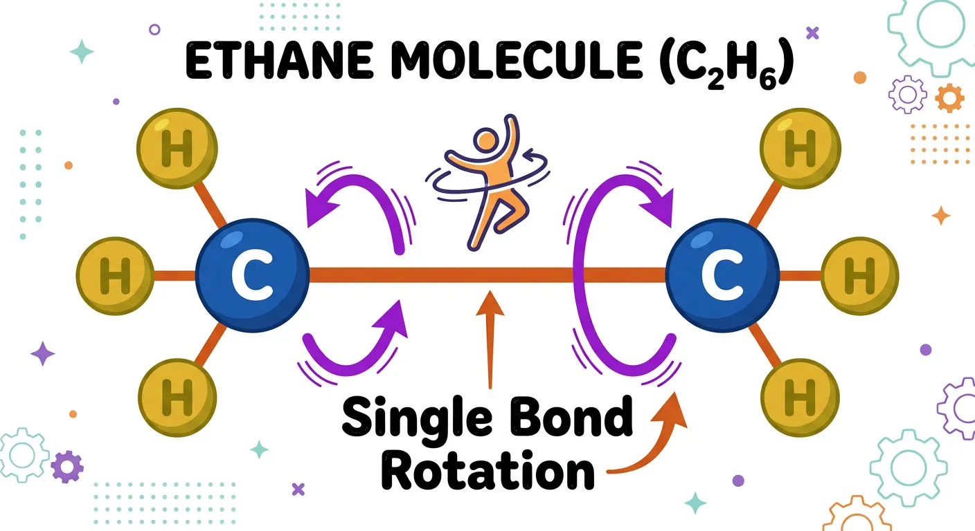 Namaste NEET aspirants! Imagine you're dancing—your body twists, but you're still you. Alkanes are like that! Because of a single sigma bond, they can twist freely. This twisting creates different shapes called conformations. Let's see how!