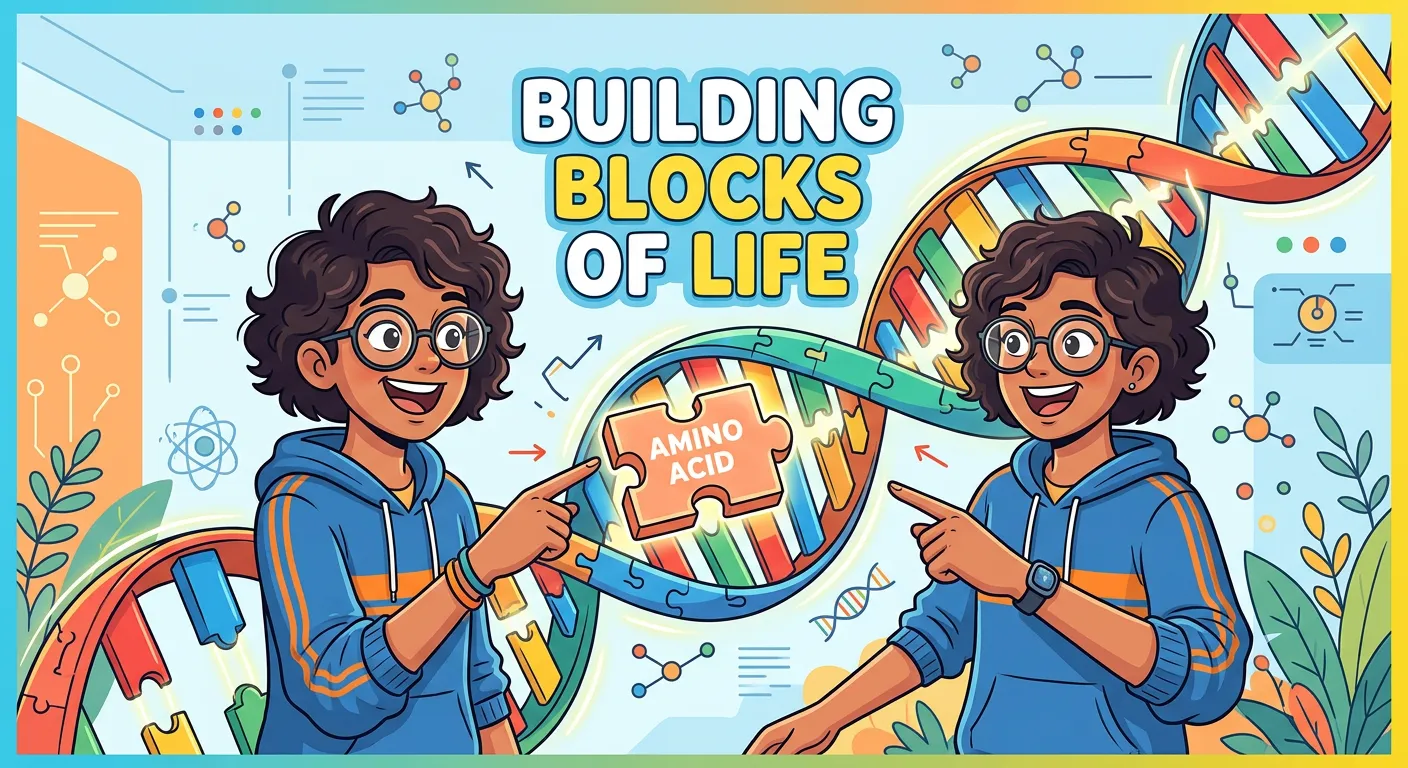 Hello Future Doctors! Imagine building a grand castle like the Red Fort. Just like small bricks make the giant structure, tiny units called Alpha-Amino Acids join together to build Proteins, the essential building blocks of our bodies! Let’s explore these fascinating molecules.