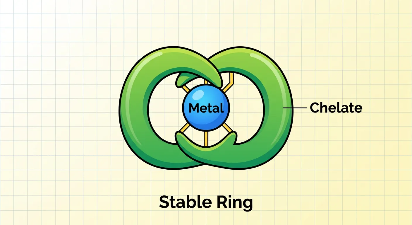 Imagine a crab gripping its prey! In chemistry, chelation is similar. It's where a single molecule uses *multiple* atoms, like little arms, to grip a central metal ion, forming a super-stable molecular ring. Think of it as a powerful, secure molecular hug!