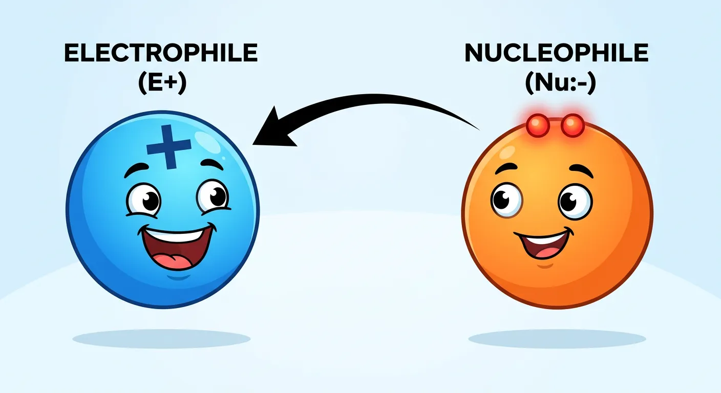 Welcome, future doctors! Imagine a chemical reaction like a bustling Indian wedding. To make a perfect match, you need two distinct personalities. Today, we meet the ultimate dynamic duo of Organic Chemistry: Electrophiles and Nucleophiles! Let's see how they find each other.