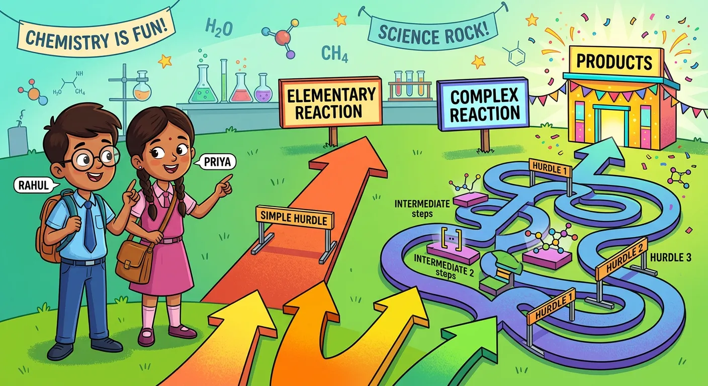 Welcome, future doctors! Imagine running a race. A single, simple hurdle is like an Elementary Reaction. But a complex obstacle course with many stages is like a Complex Reaction. Today, we'll learn exactly how chemical reactions take different journeys, whether they are one-step sprints or multi-step marathons!