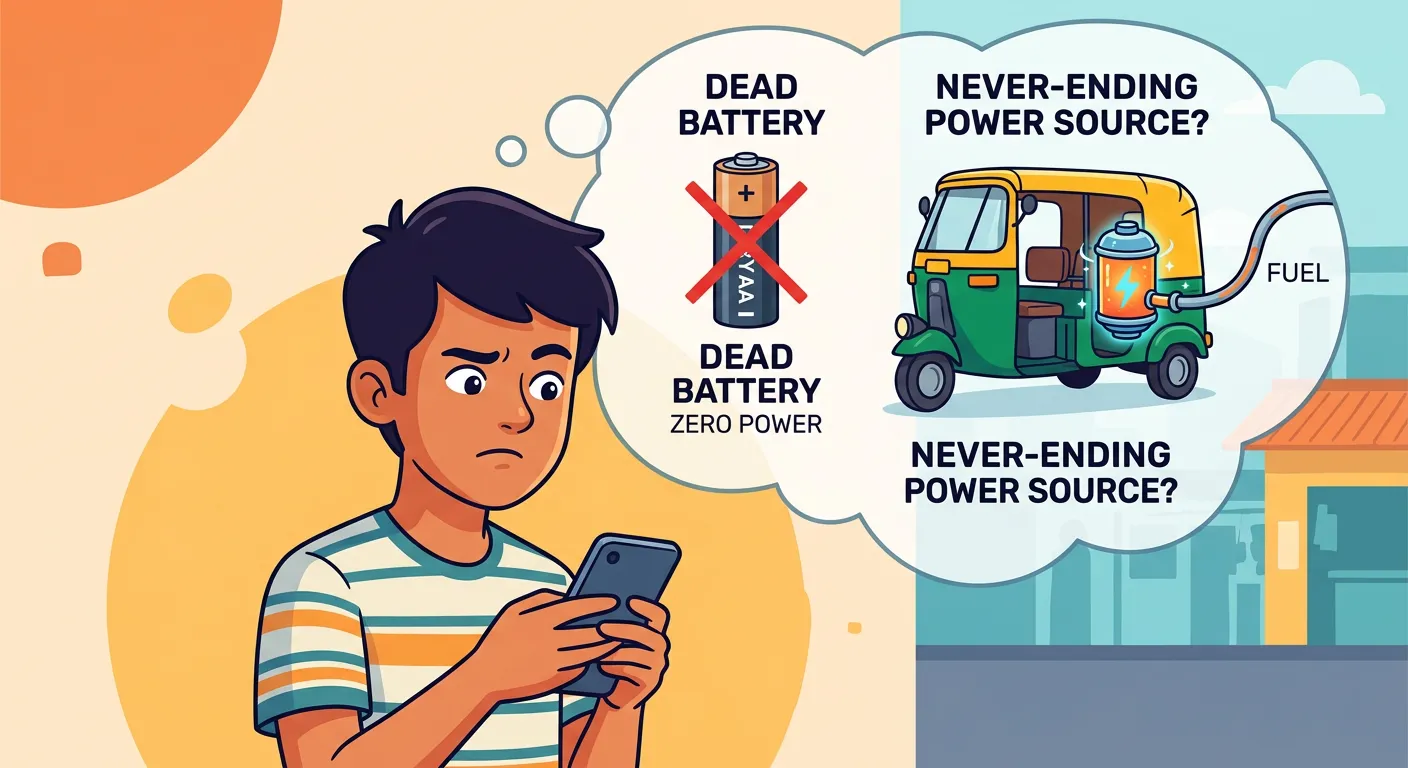 What if your phone never died? While normal batteries store limited chemicals inside, fuel cells are different! They are like power generators that work continuously as long as you feed them fuel and an oxidant. Intrigued? Let's dive in!