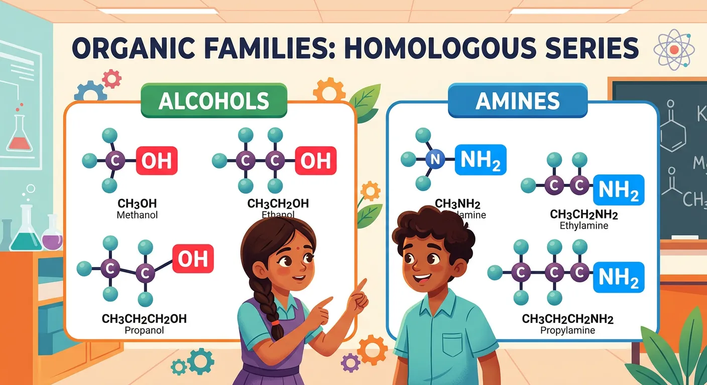 Hello students! You know how we belong to families with shared last names and similar habits? Organic compounds also live in families called Homologous Series. It's the ultimate way to organize thousands of molecules. Ready to meet these families?