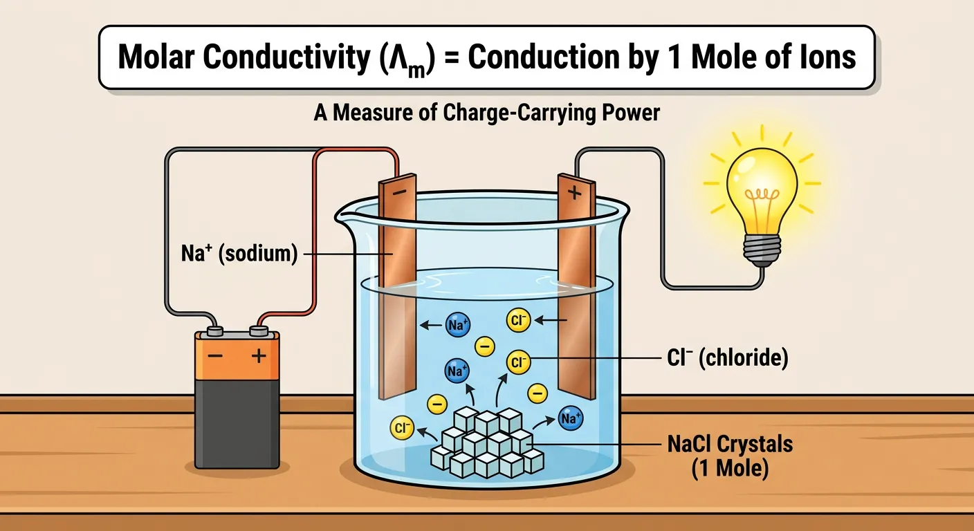 Imagine electrical conduction in water as a superhighway. Instead of cars, we have ions! Molar conductivity measures how effectively one mole of these ions can carry charge through a solution. Let's explore how dilution affects this conductivity.