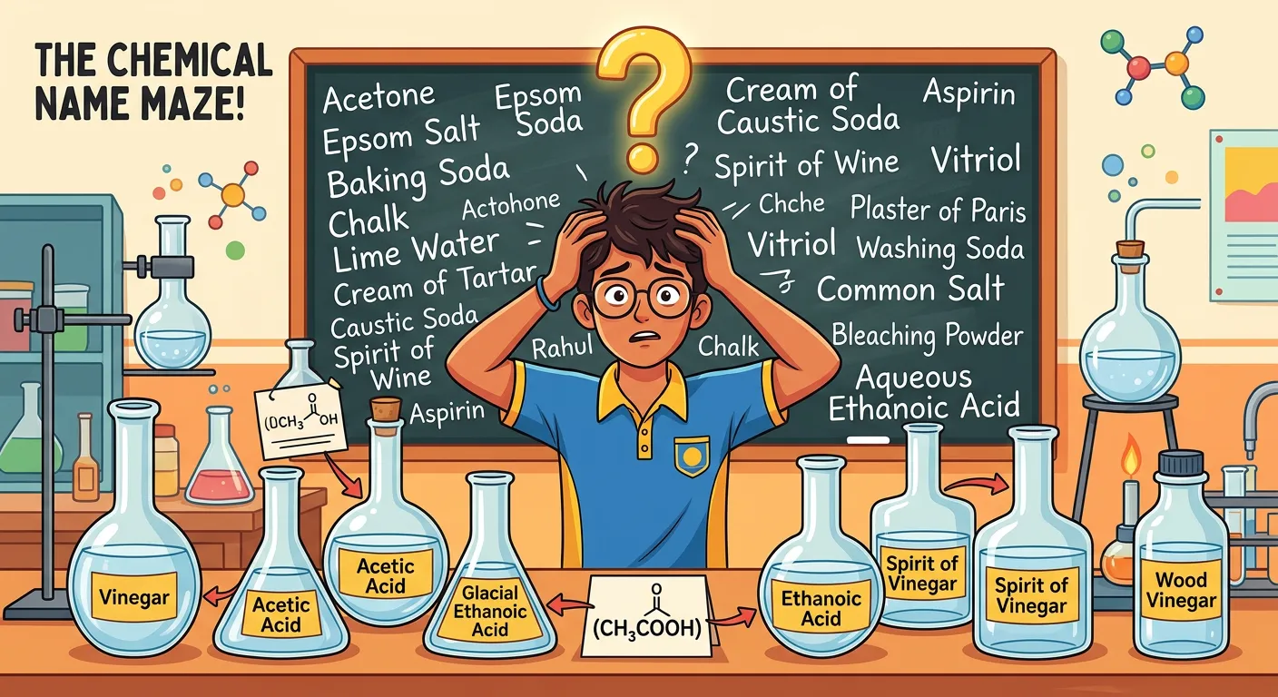 Imagine having ten different names for the same friend! That's the confusion in organic chemistry with trivial names. Before systematic rules, compounds were named based on their source or property, like 'Acetic acid' from vinegar. It gets chaotic, right?