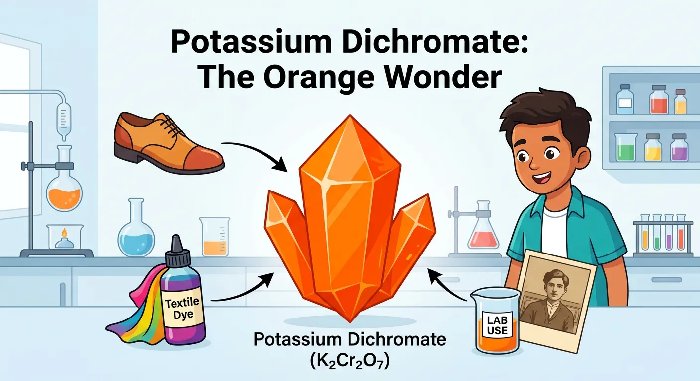 Meet the orange crystal that changes colors and solves chemistry riddles! This is Potassium Dichromate, a super-important compound for NEET. Let's trace its fascinating journey from a raw mineral to this powerful lab chemical. You’ll be amazed!