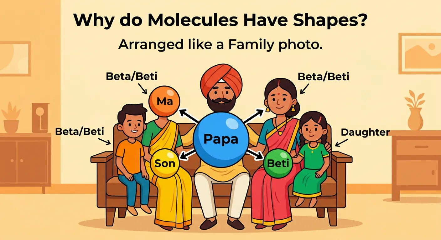 Ever wondered why a water molecule isn't just a random blob of hydrogen and oxygen? Just like our families have specific places when posing for a photo, molecules too have defined shapes! Today, we'll discover *how* atoms arrange themselves in a molecule.