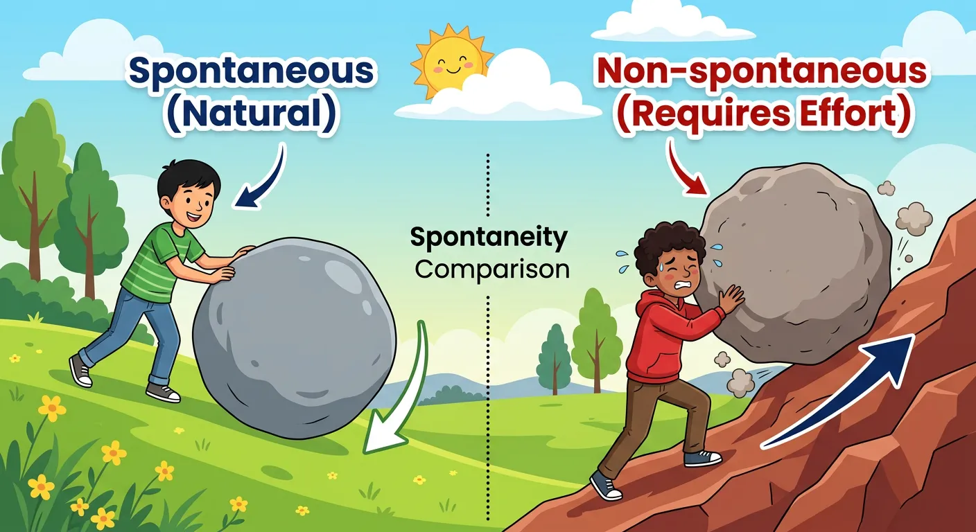 Have you ever wondered why some reactions happen instantly, like a rock rolling downhill, while others require constant effort? In chemistry, we call these natural processes 'spontaneous'. Today, we'll discover the secret force that predicts which way a reaction will 'go'!