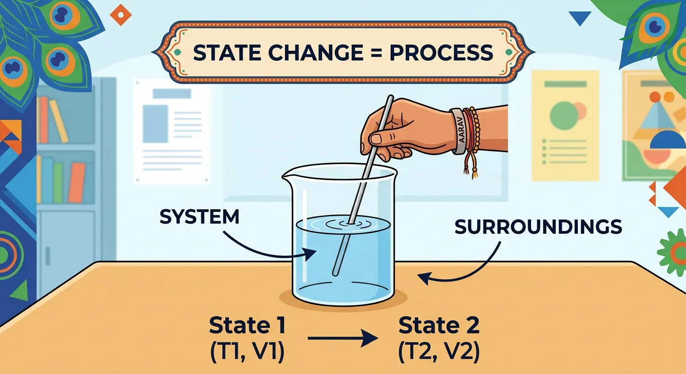 Namaste future doctors! Welcome back to our fun Thermodynamics journey. Today, we're going to understand 'processes'. Think of a 'process' simply as the 'path' a system takes to change from one state to another. It's like going from your home to school!