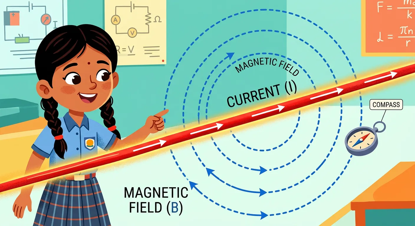 Meet Aisha, a smart NEET aspirant! She knows that current flowing through a straight wire produces circular magnetic field lines, like a superhero's aura! But what if she curls this wire? Let's find out!