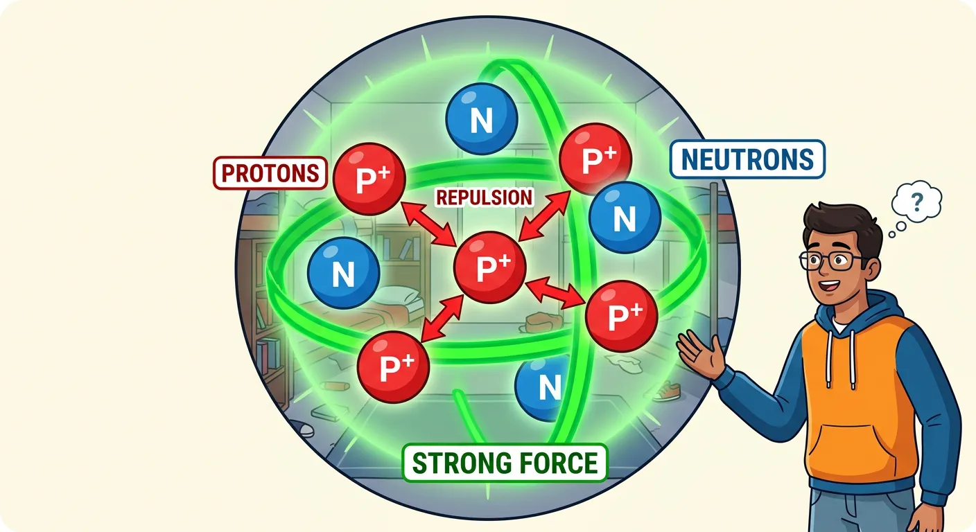 Ever wondered why protons, all positively charged, don't blow the nucleus apart? They repel! But there's a super-strong, magical glue holding them together—the Strong Force! Today, we decode Binding Energy!