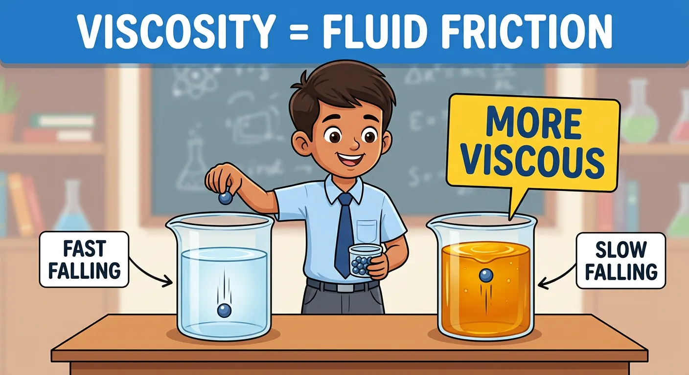 Hello future doctors! We've all noticed honey flows slower than water, right? That's due to an internal 'stickiness' in fluids called viscosity. Think of it as 'fluid friction' that resists motion when a fluid flows.