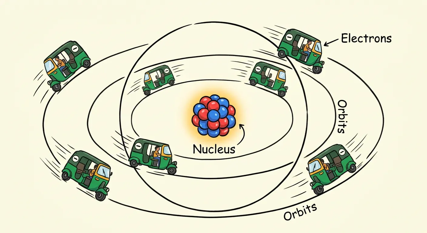 Welcome, future doctors! Today, let's explore the core of existence: the nucleus. Think of an atom like a busy city. While electrons are like bustling auto-rickshaws in the outskirts, the nucleus is the power-packed central government building!