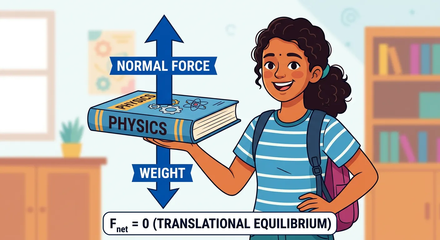 Welcome, future doctors! Imagine holding this thick book perfectly still. It's not moving up or down because all the forces are perfectly balanced. That's our first condition for a rigid body to be at rest: **Translational Equilibrium**. The total force on it must be zero!