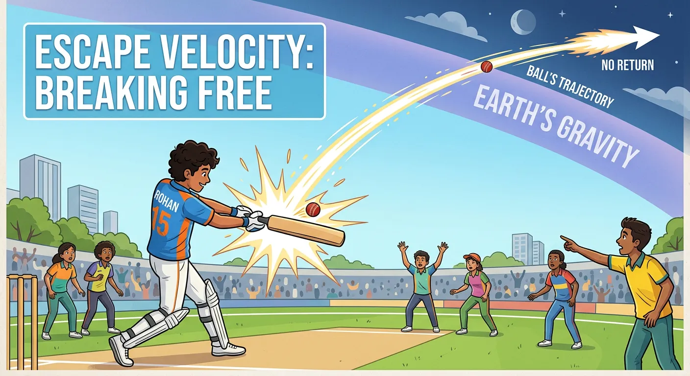 Hello students! Have you ever wondered if you could hit a cricket ball so hard that it flies right out of Earth's atmosphere and never comes back? Well, that speed is exactly what we call Escape Velocity!