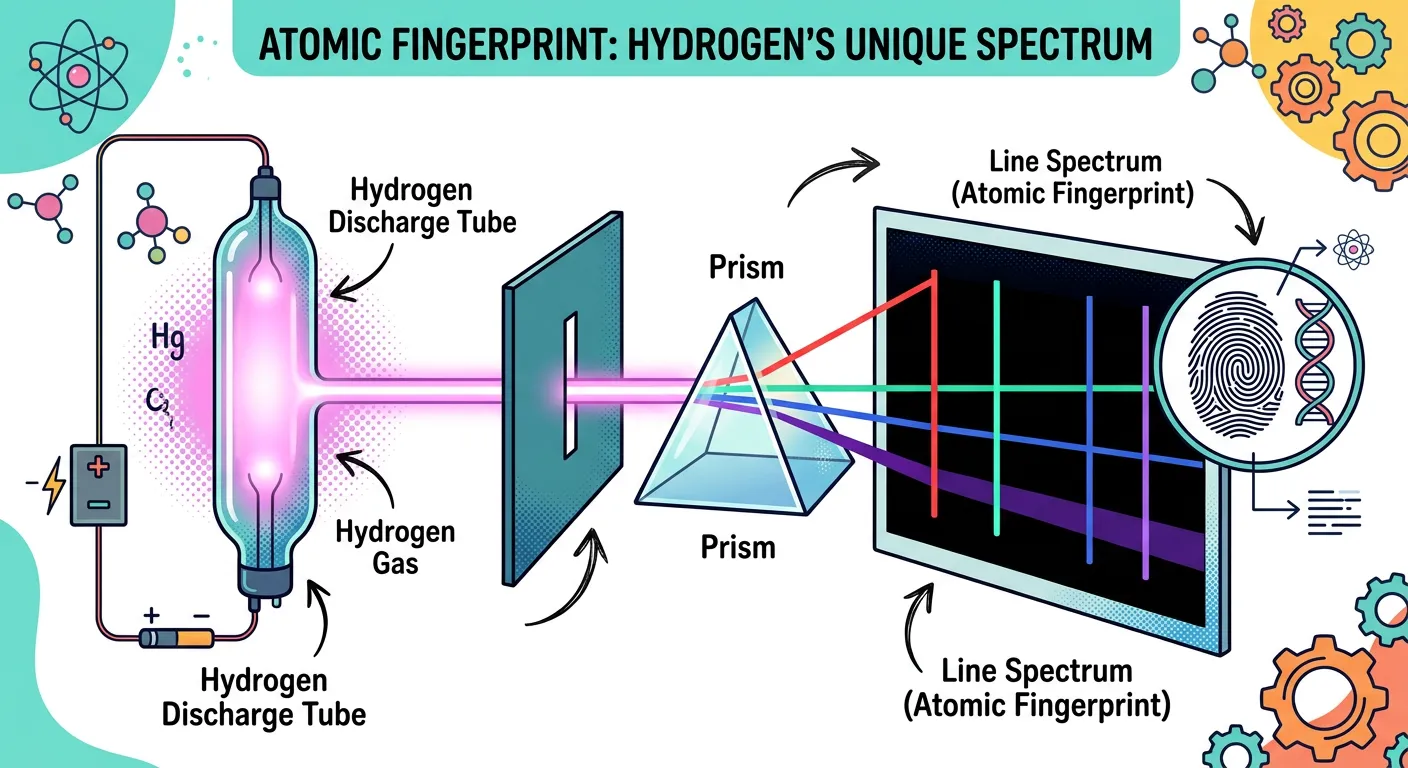Imagine every element has a unique fingerprint. For atoms, it's their spectrum! When we excite hydrogen gas in a tube, it emits a specific set of colored lines, not a full rainbow. This is the hydrogen spectrum, and it holds the secrets of atomic structure.