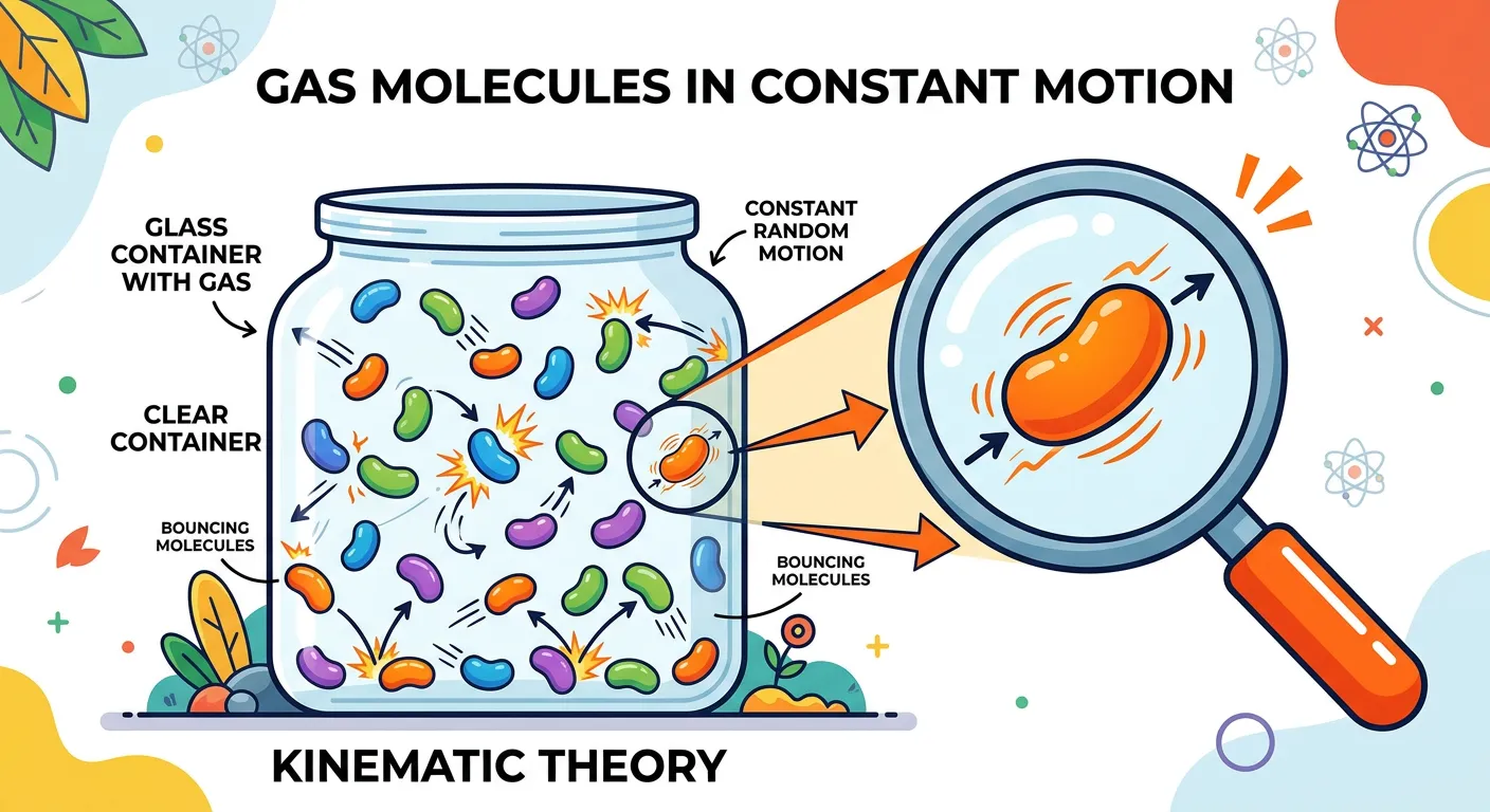 Welcome, future doctors! Today, let's explore the *asli* meaning of temperature! Imagine a room filled with bouncing balls. That's a gas! Kinetic Theory says these gas molecules are *hamesha* moving, crashing, and dancing!