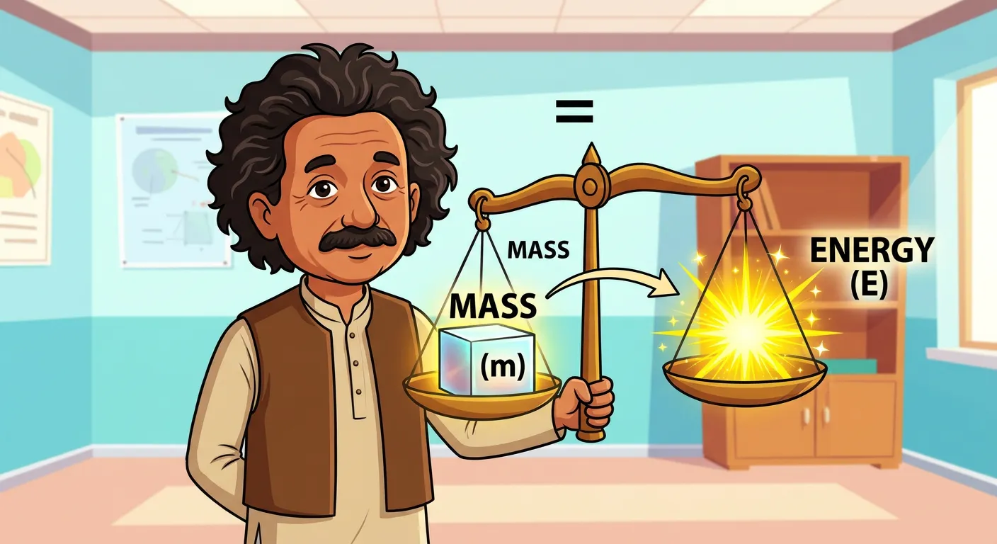 Welcome! Today we unlock one of physics’ biggest secrets. Imagine a magic scale. For centuries, we thought mass (stuff you can touch) and energy (stuff that makes things go) were completely separate. But a genius named Einstein discovered they are actually two sides of the same coin!