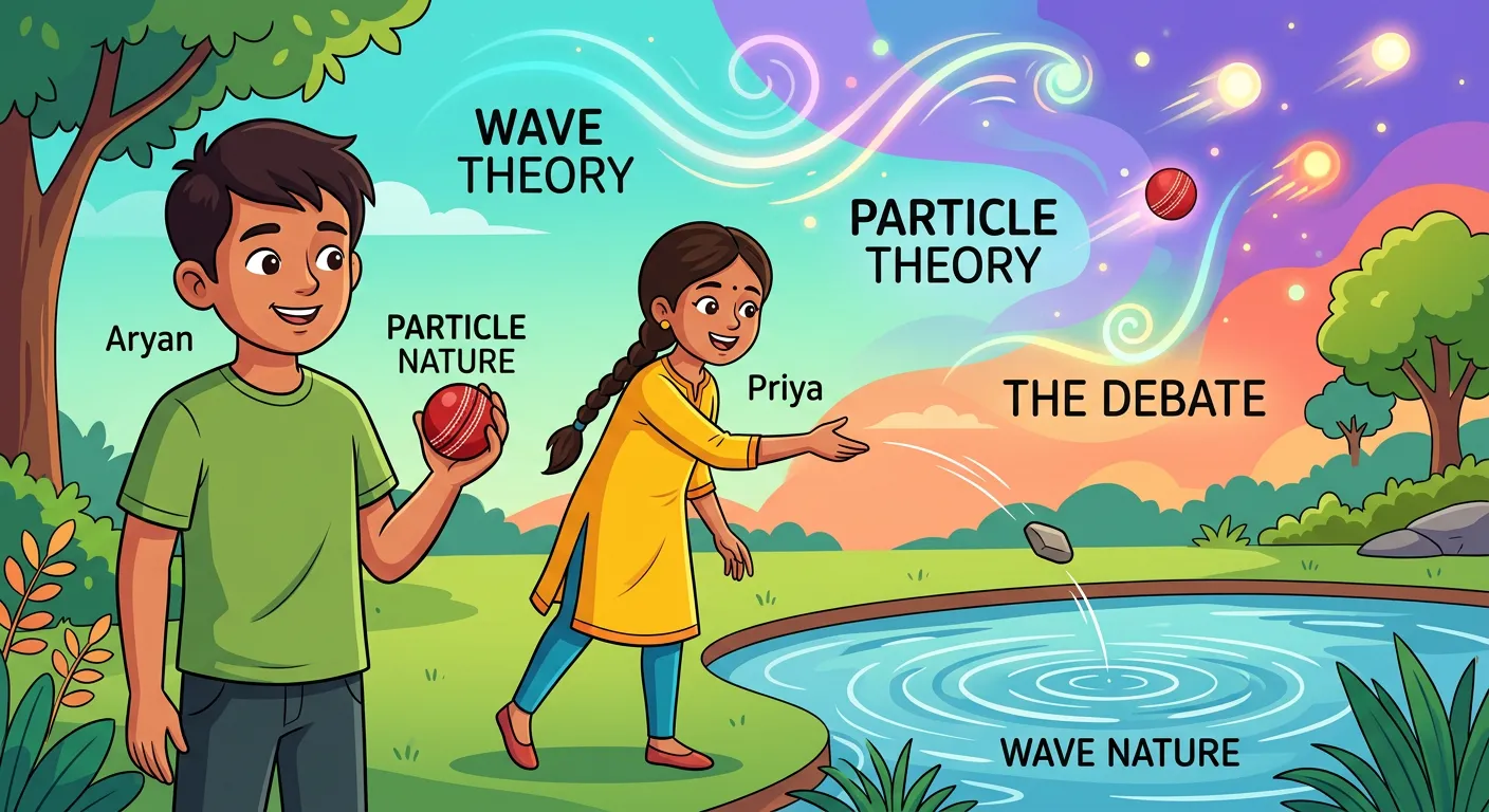 Hello future doctors! We always thought light was just a gentle wave, like ripples in a pond. But sometimes, light behaves like a focused stream of tiny particles, just like a fast-moving cricket ball. Let's explore this dual nature of light!