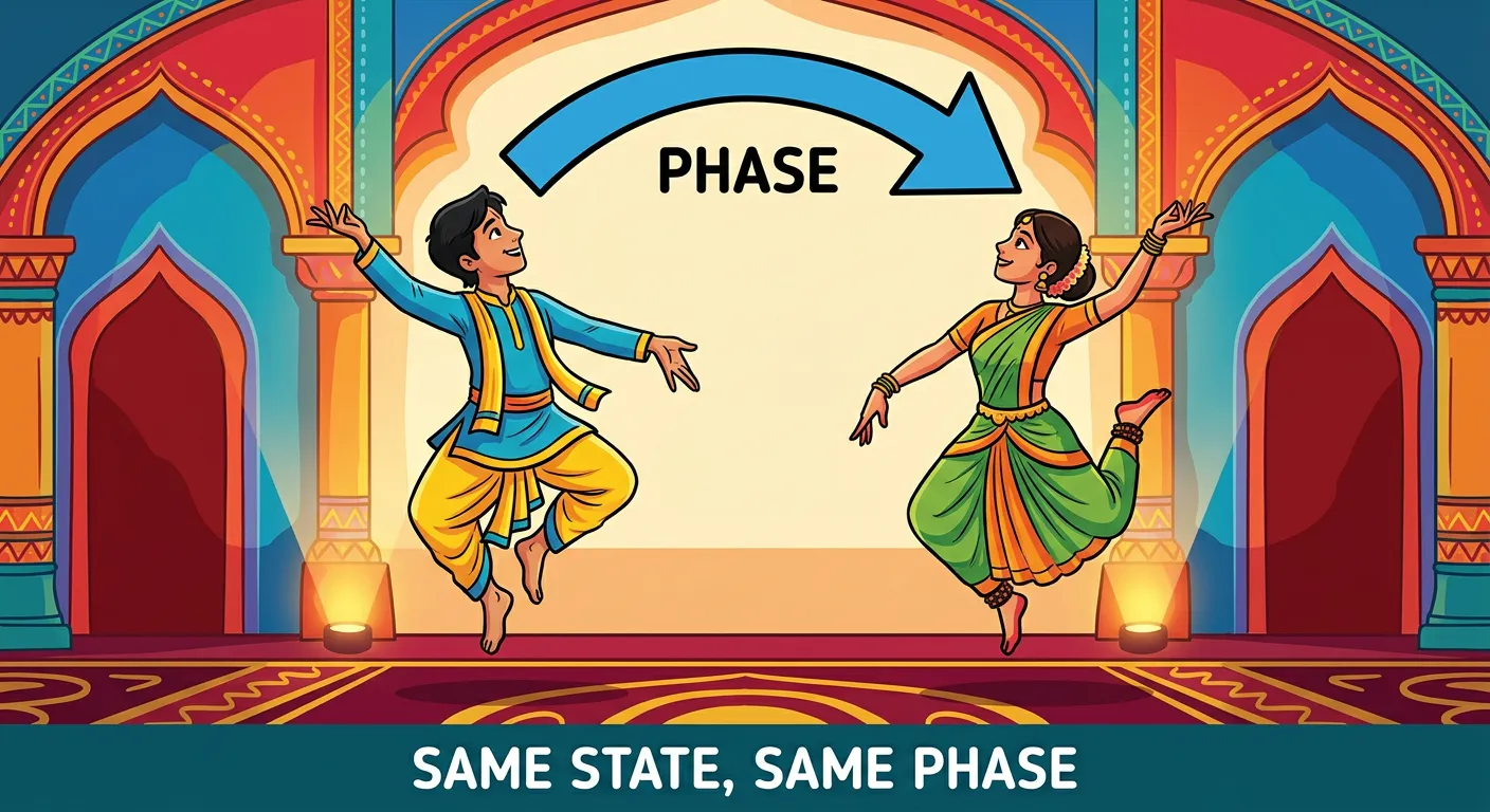 Namaste future doctors! Imagine two classical dancers moving perfectly in sync. They start together, jump together, and land together. At any moment, their position and direction of motion are identical. In Physics, we say they are in the same 'Phase'.