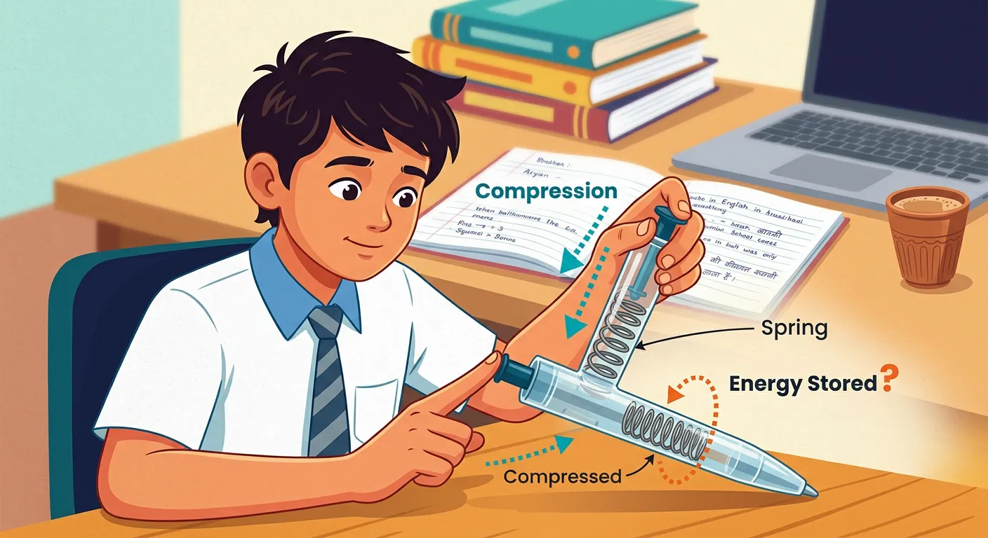 Hello future doctors! Have you ever wondered why a toy car zooms off when pulled back? It's all about stored energy in a spring! Today, we'll crack the secrets of Spring Potential Energy. Imagine this simple pen spring; compressing it 'charges' it up!