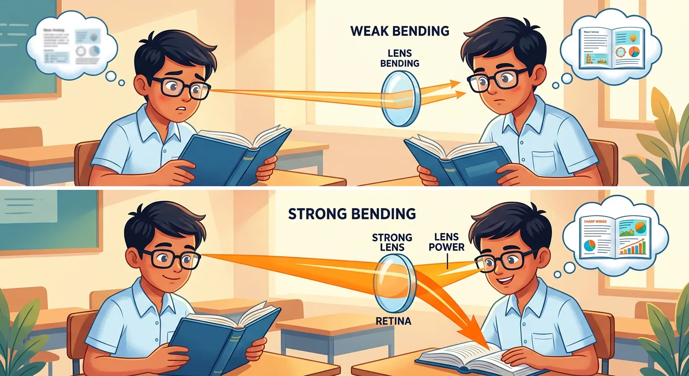 Ever wonder why some glasses are 'stronger' than others? Just like a powerful cricket player changes the game, 'Lens Power' tells us how strongly a lens can bend light! It's all about bending strength. Let's find out how we measure it!