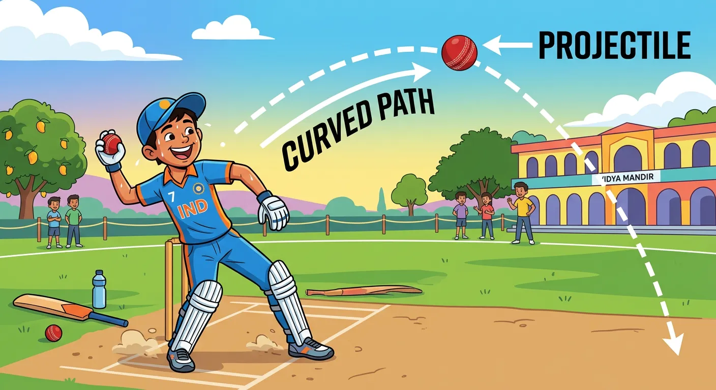 Namaste future doctors! Welcome to the exciting world of Projectile Motion. Imagine a cricketer launching a ball for a massive six! That curved path the ball follows? That's what we call Projectile Motion. Let's see how this works.