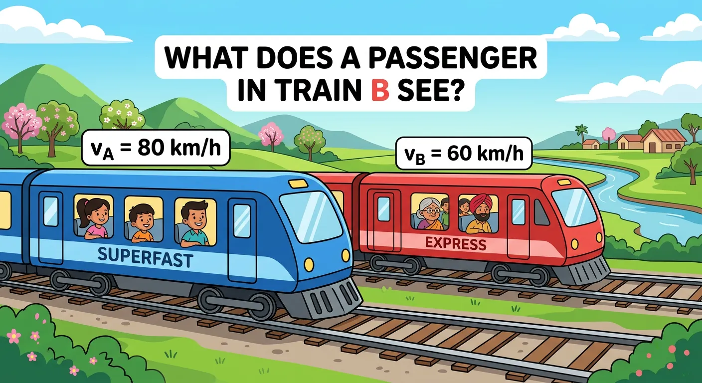 Hey Future Doctors! Ever been on a train and noticed another one passing you? Does it look slower, faster, or even standing still? This feeling is what 'Relative Velocity' is all about – it’s how motion appears from different viewpoints. Welcome to the journey!