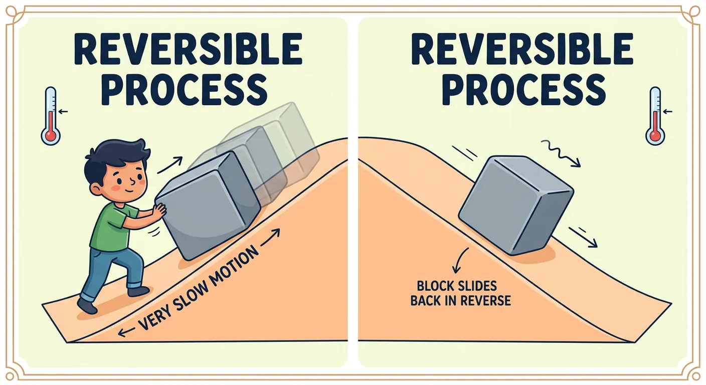Imagine a process like carefully climbing a staircase, one tiny step at a time. If you can climb back down using the *exact same* steps and return to your starting point with *nothing* changed, that's a reversible process. It's an *ideal* concept!