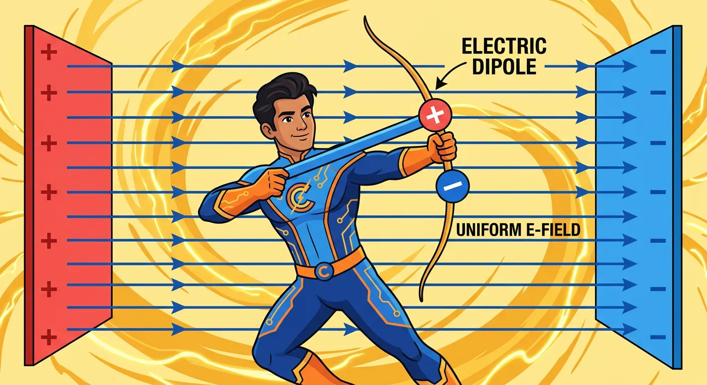 Ever wondered why a hand pump always wants to align vertically? In our world of charges, we have an 'Electric Dipole'—a pair of equal and opposite charges. Today, we'll see what happens when it gets caught in a force field, specifically a 'Uniform Electric Field'!