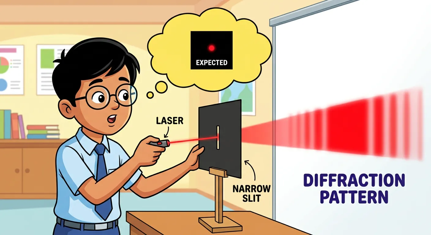 Hello future doctors! We've seen how light spreads around corners, right? That’s diffraction. But have you noticed that the central bright spot on the screen isn’t just a tiny dot? It's surprisingly wide! Let’s figure out why this central maximum is so broad.